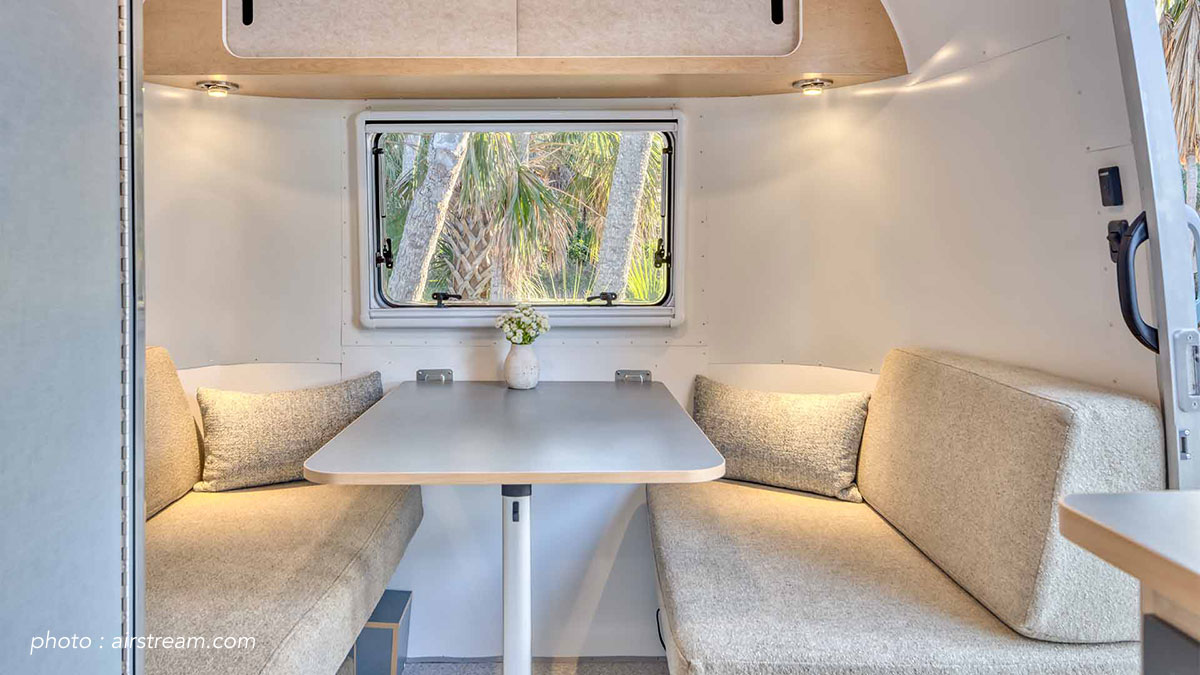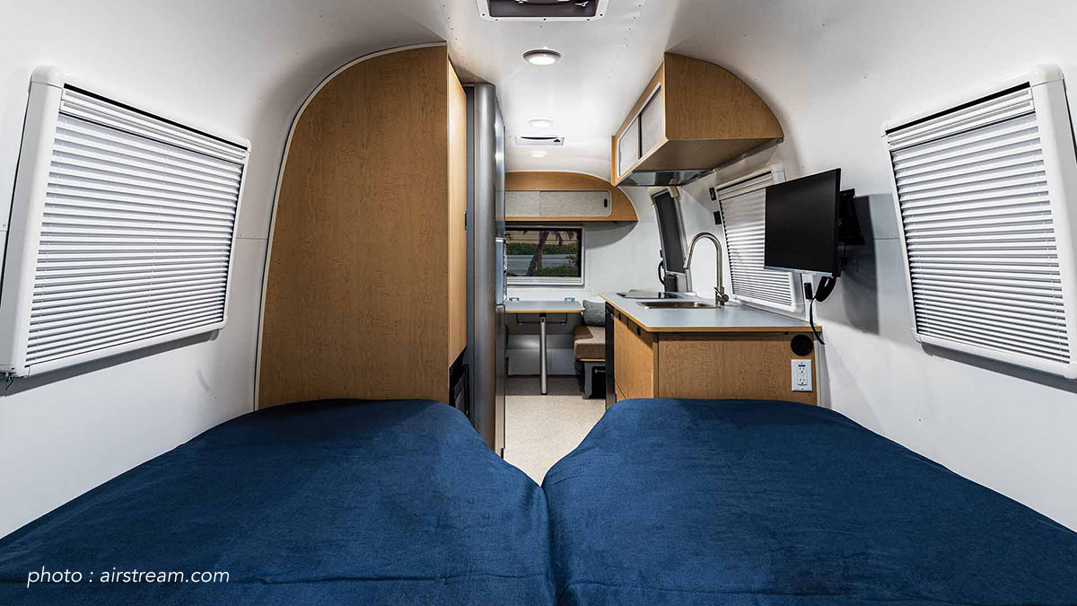 World Traveler™ は、象徴的な Airstream デザインと軽量で牽引しやすい構造を組み合わせることで、よりシンプルで自由な旅をコンセプトとしています。 エアコンの配置をルーフからカーブサイドベッドの下へと変更し、ベッドエリアとダイネット、ラウンジスペースを一体化させフレキシブルな空間とするなど、外観から内装にいたるまでシームレスなデザインを実現。これは、ウォーリー・バイアムが初めてエアストリームトレーラーをデザインした時のビジョンを改めて明確化させ、その伝統を継承し、ブランドの象徴的なシルエットを反映させるためです。